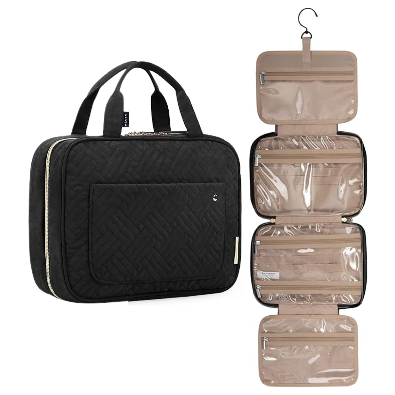 Kyoto Kulturtasche mit Haken - Damen und Herren - Schminktasche - Beauty Case Damen - Reiseorganizer Herren, Mädchen und Kind - Schwarz