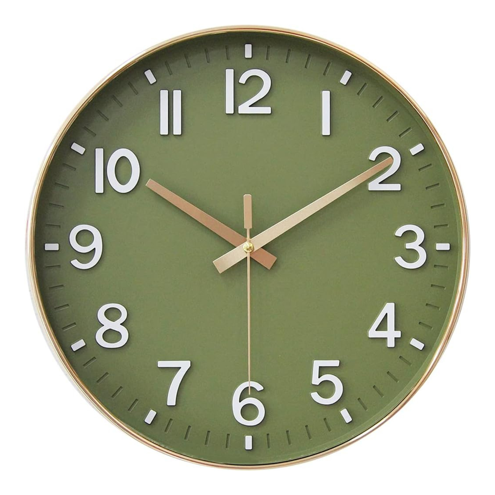 Tyme Wanduhr - 30cm Uhr Modern - Analog - Geräuschloses Uhrwerk - Grün Gold