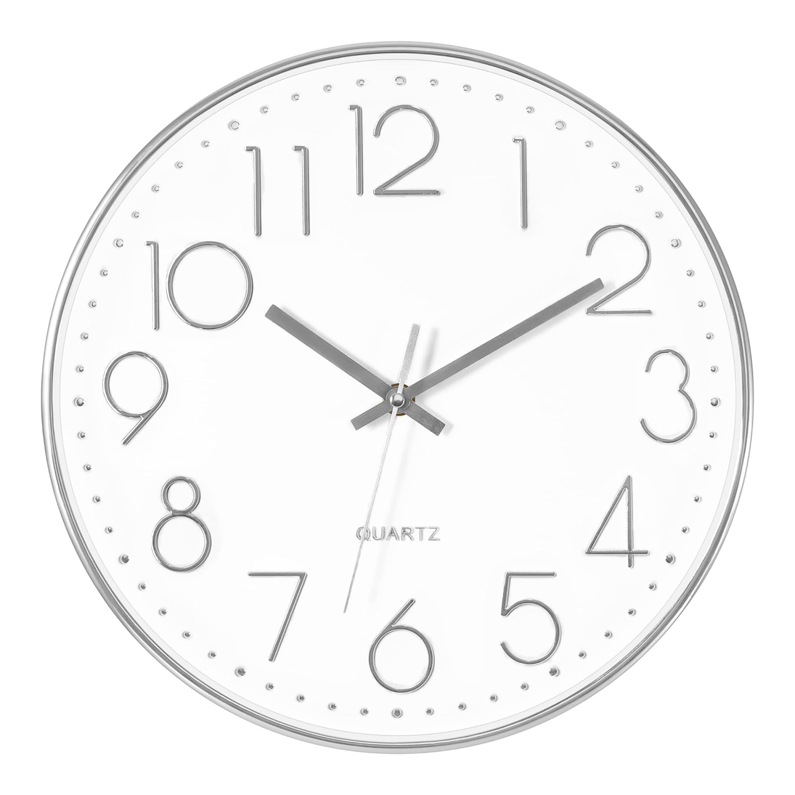 Tyme Wandklok - 30cm Klok Modern - Analoog - Stil Uurwerk - Wit Zilver