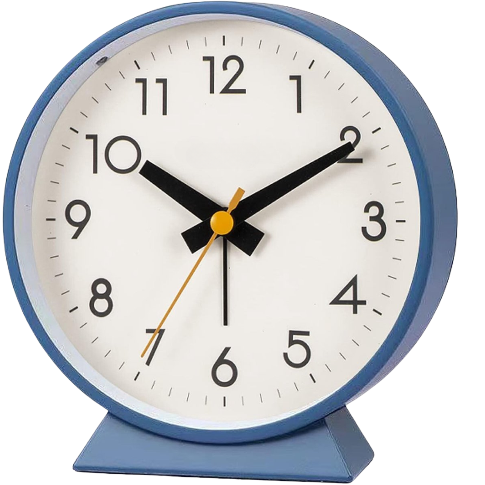 Tyme Wekker Analoog - Zonder Tikgeluid - Met Alarm - Incl. Verlichting - Blauw - Rond met Voet