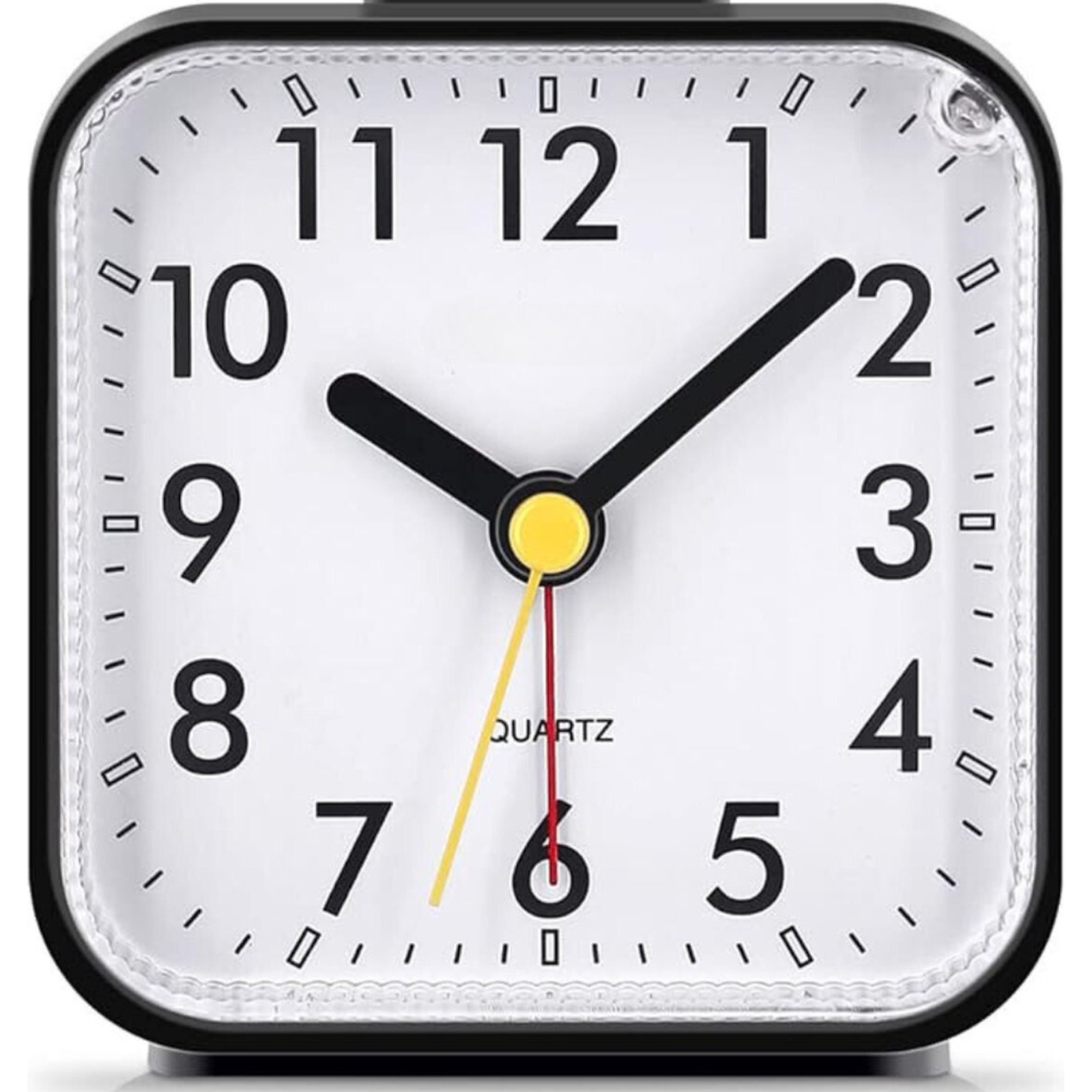 Tyme Wekker Analoog - Zonder Tikgeluid - Met Alarm - Incl. Verlichting - Zwart - Vierkant