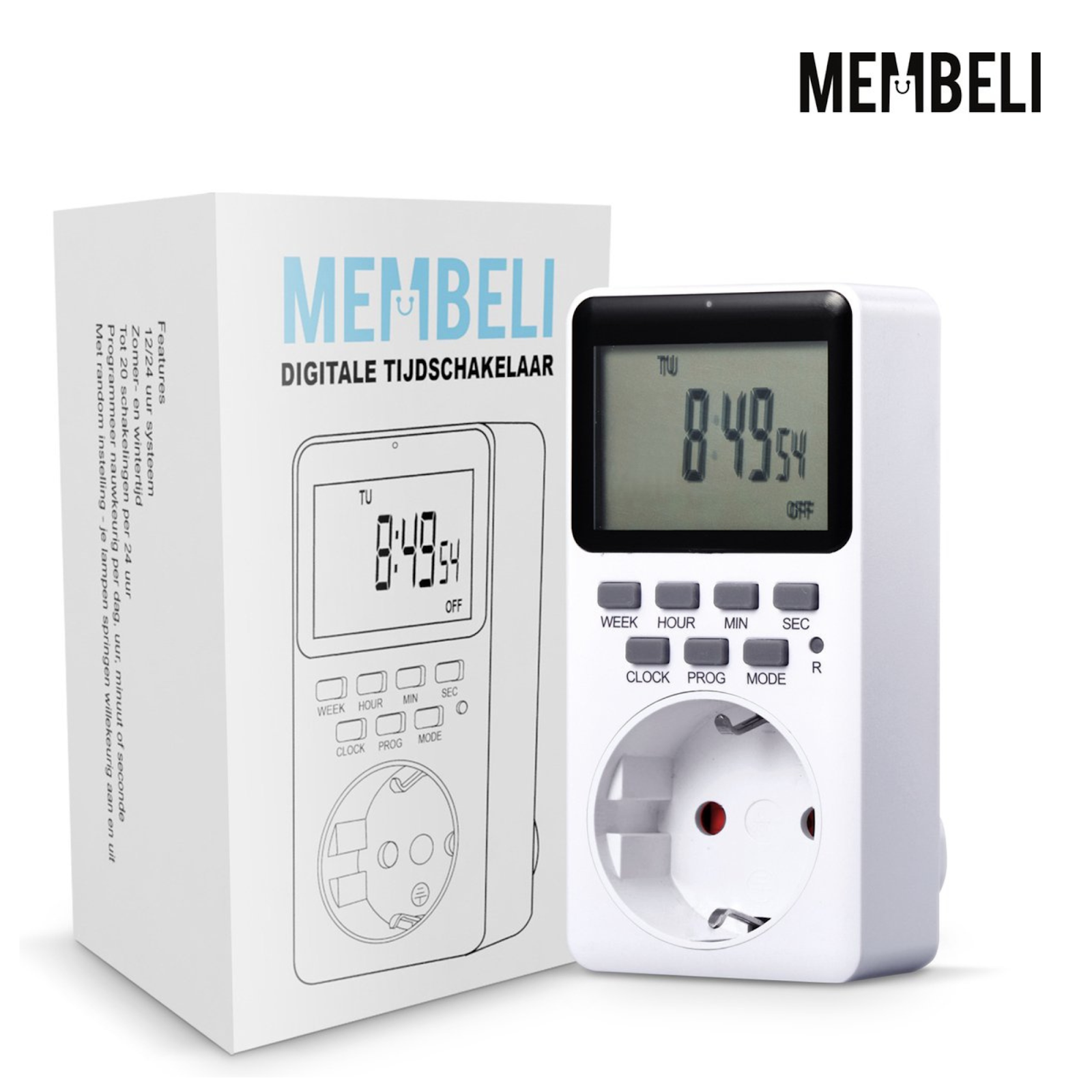 Membeli Digitale Tijdschakelaar voor Binnen - Type E - Bespaarstekker - Schakelklok - Tijdschakelklok - Belgie