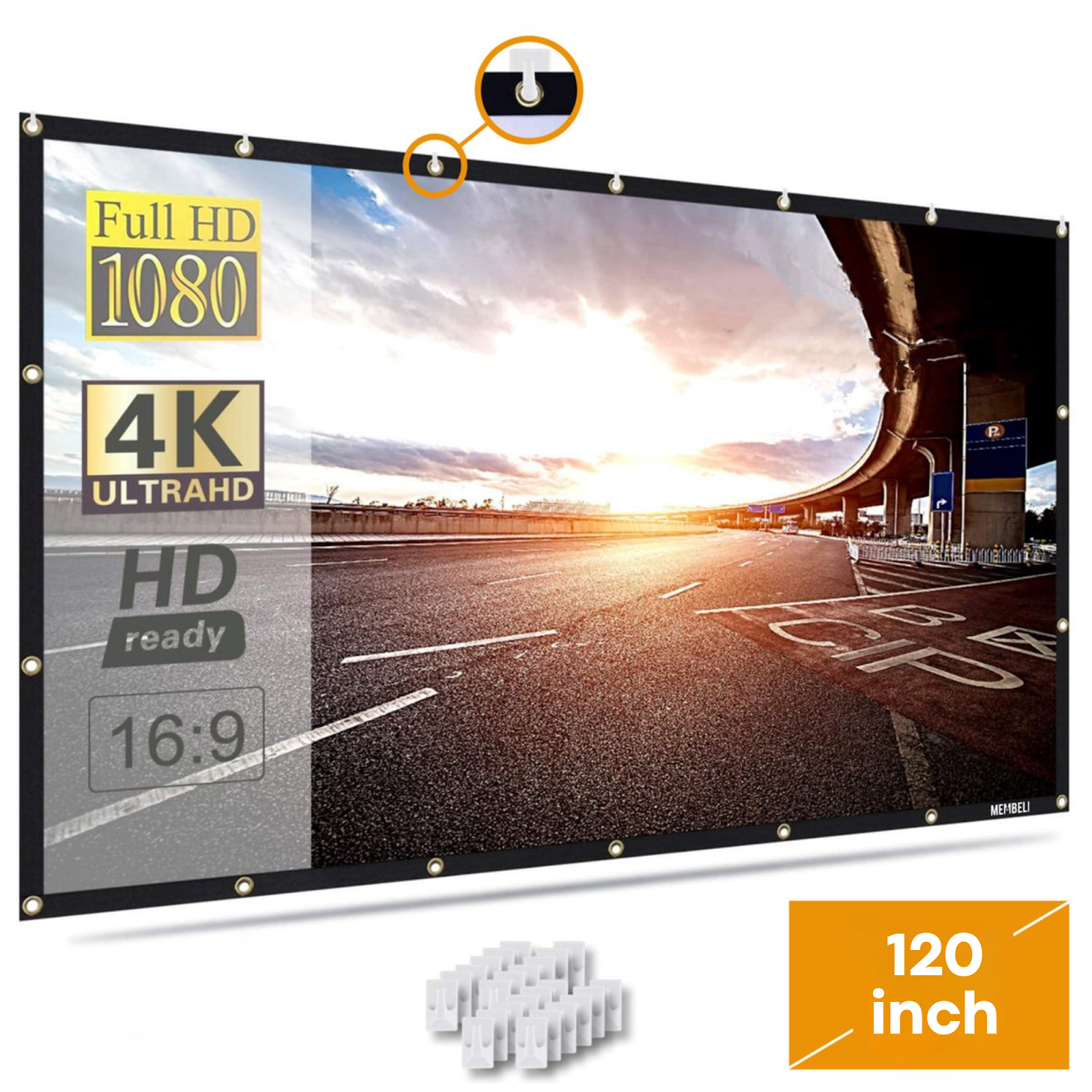 Membeli Projectiescherm - 120 inch (304cm) - 16:9 - Beamer scherm - Opvouwbaar projectiedoek - Uitrekbaar - Anti-kreuk