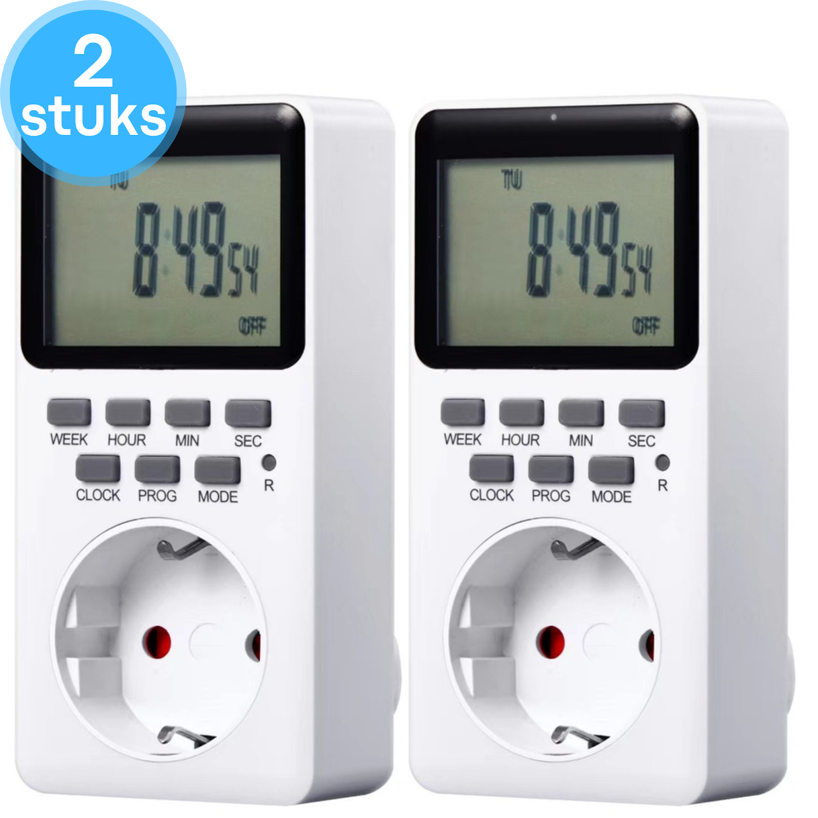 Membeli Tijdschakelaar voor Binnen - Schakelklok Stopcontact - Digitaal - LCD Display - Tijdschakelklok - Type F - 2 stuks