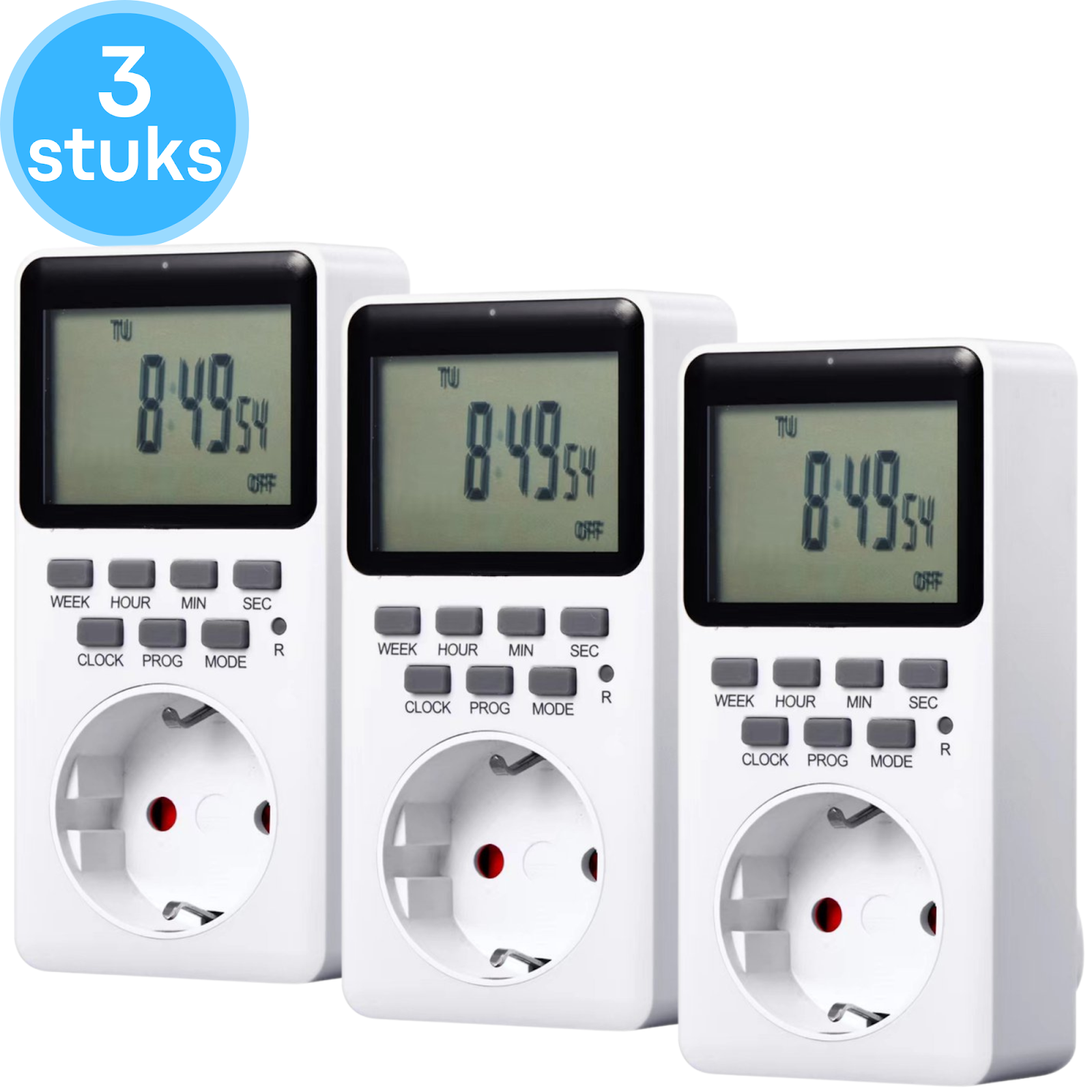 Membeli Tijdschakelaar voor Binnen - Schakelklok Stopcontact - Digitaal - LCD Display - Tijdschakelklok - Type F - 3 stuks